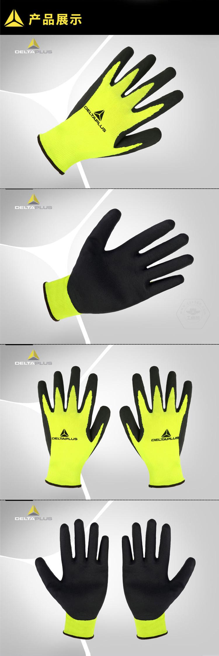 商品名稱:代爾塔 工作熒光勞保手套 乳膠涂層耐磨抗撕裂強(qiáng) 透氣 棉紗針織 201733 1雙