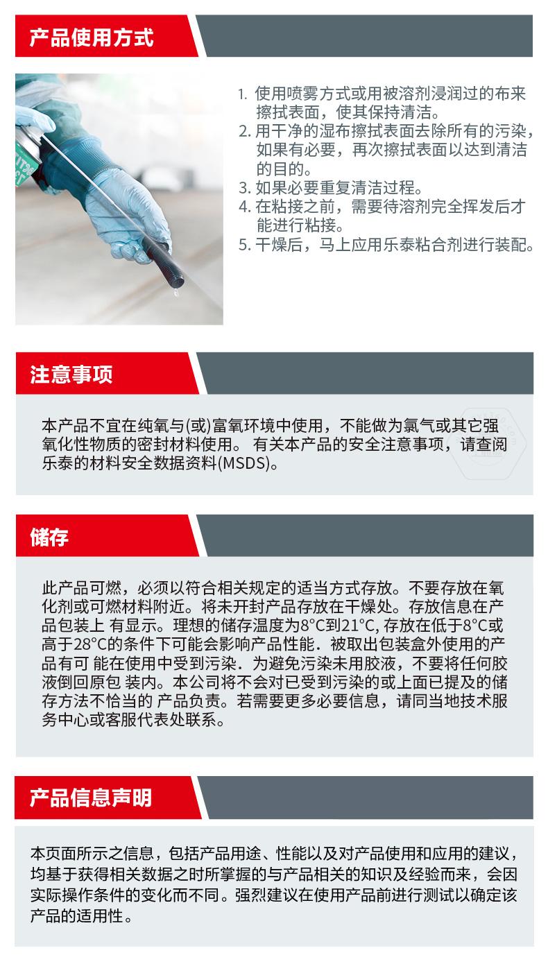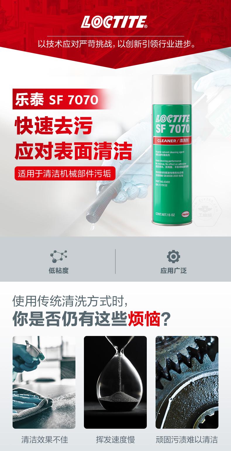 樂泰SF7070是一款溶劑型清洗劑。樂泰SF7070主打快速去污,適用于表面清潔和機(jī)械部件污垢清洗。樂泰SF7070無色透明,化學(xué)類型為碳?xì)浠衔铮?0℃下干燥時間為5-20分鐘,粘度非常低。樂泰SF7070具備快速揮發(fā)、應(yīng)用廣泛、強效清潔等特點,可用于裝配前的最終清潔處理。樂泰SF7070還與金屬、多種塑料和彈性體兼容。
