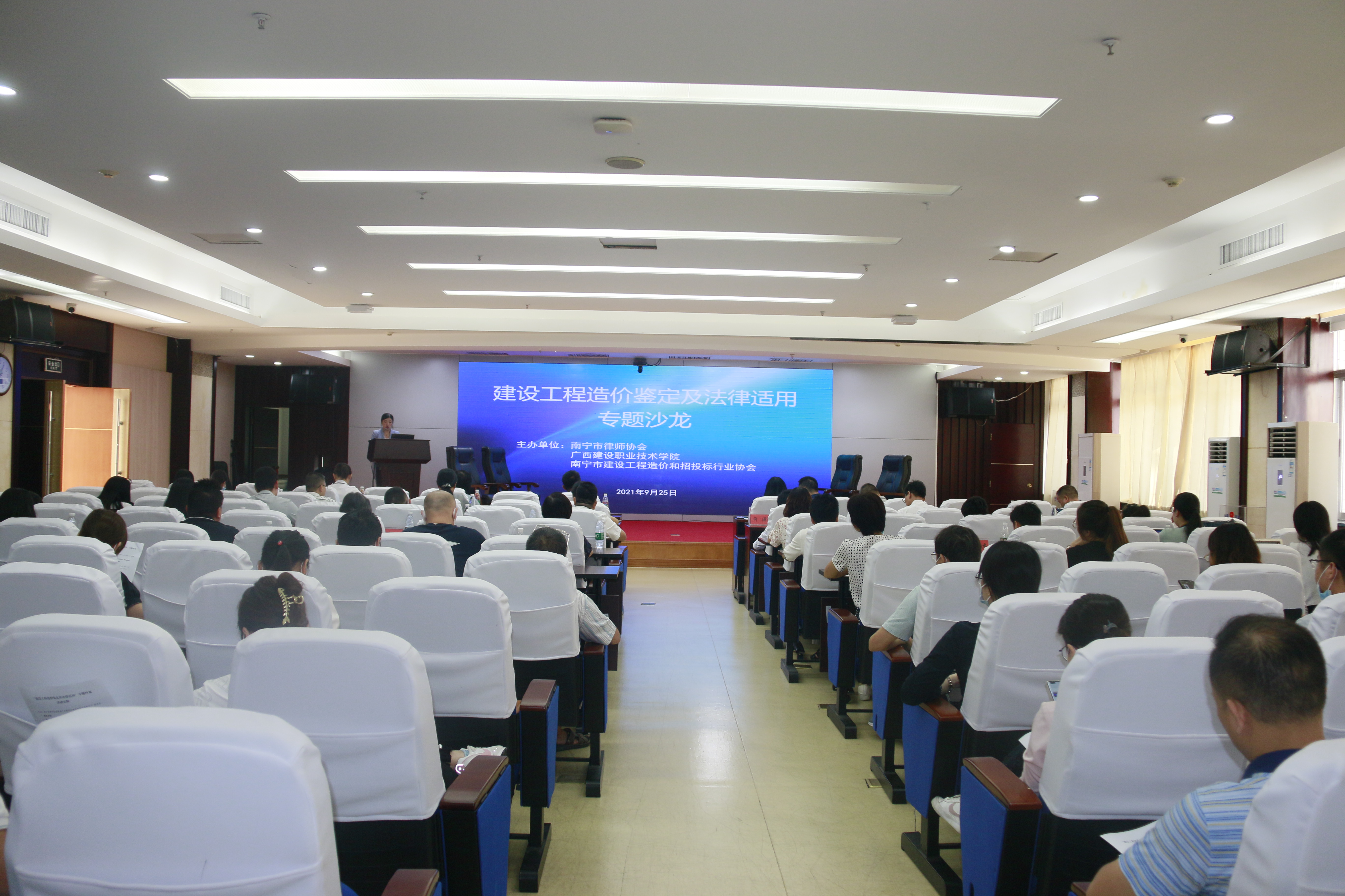 9月25日上午,南寧市律師協(xié)會與廣西建設(shè)職業(yè)技術(shù)學(xué)院、南寧市建設(shè)工程造價和招投標行業(yè)協(xié)會共同開展的“建設(shè)工程造價鑒定及法律適用”專題沙龍活動在南寧市司法局成功召開。