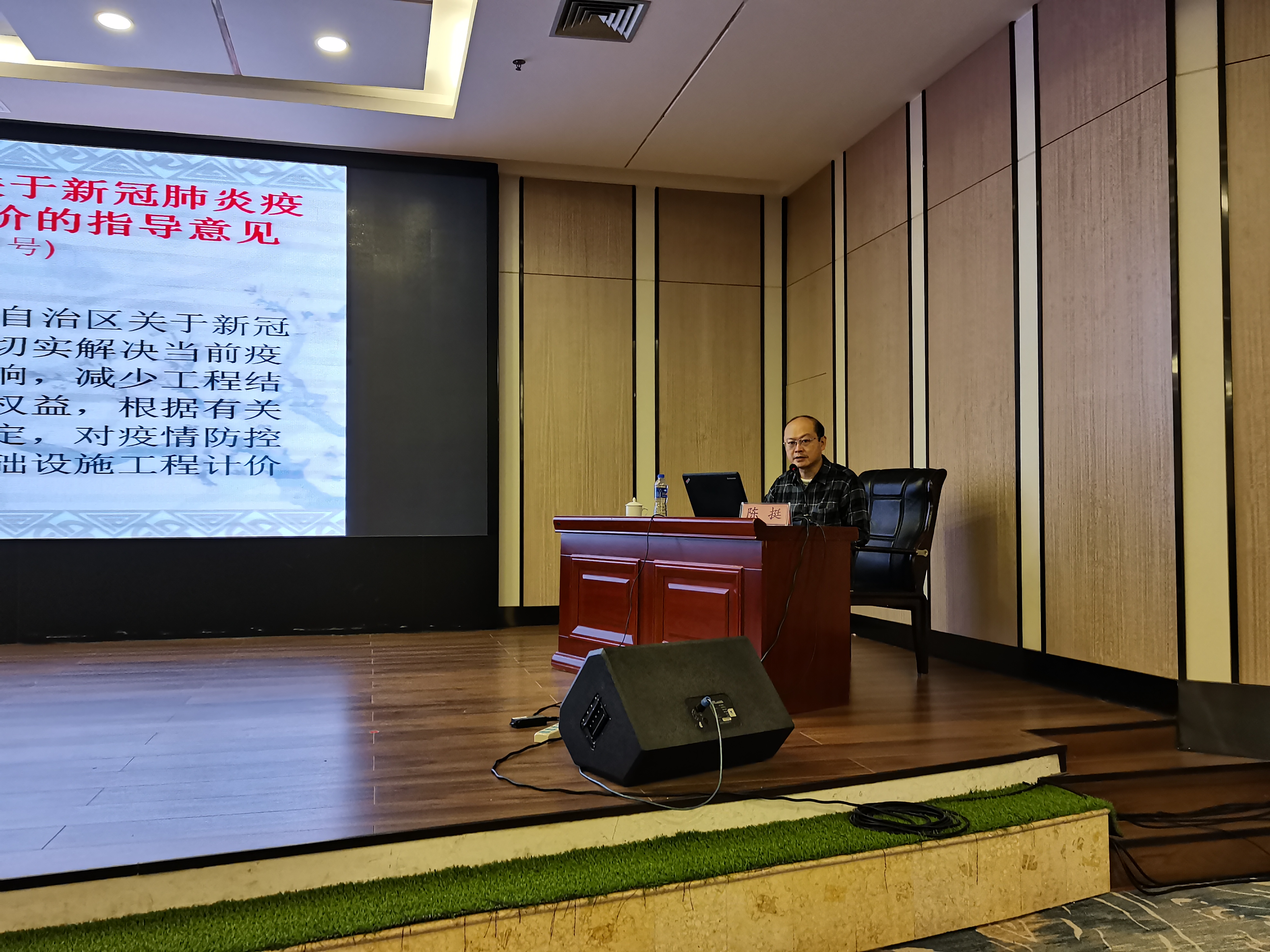 自治區(qū)建設工程造價站站長、書記陳挺進行授課 廖處長以《互聯(lián)網環(huán)境下的司法鑒定工作》為主題詳細解讀司法鑒定工作的相關法律規(guī)定以及企業(yè)網上申報加入人民法院委托鑒定系統(tǒng)的注意事項。