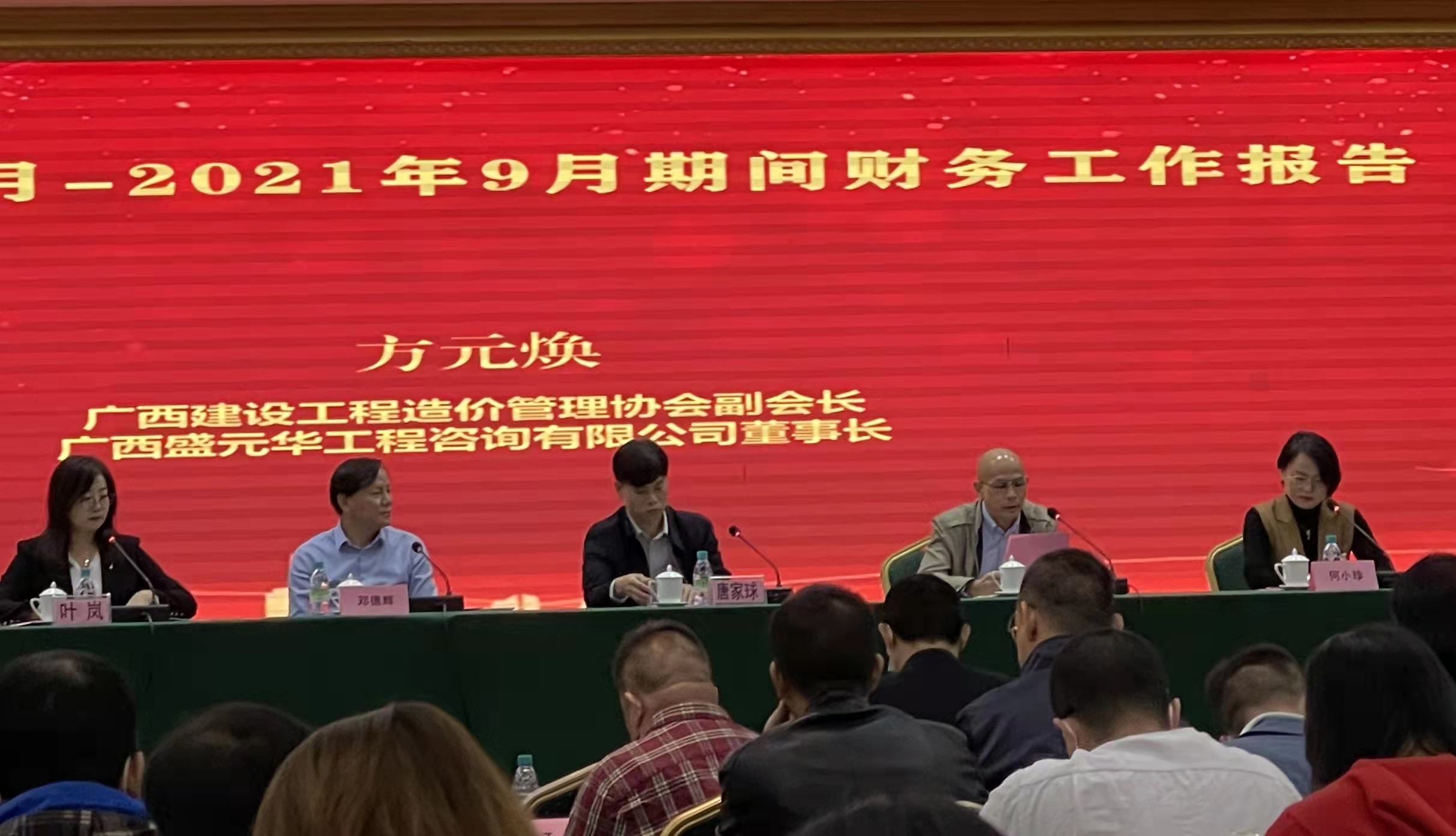 廣西建設(shè)工程造價(jià)管理協(xié)會(huì)第五屆第二次理事會(huì)暨第五屆第二次會(huì)員代表大會(huì)于2021年11月2日在南寧隆重召開(kāi),會(huì)上我公司董事長(zhǎng)方元煥作為協(xié)會(huì)副會(huì)長(zhǎng)在會(huì)上作財(cái)務(wù)工作報(bào)告。